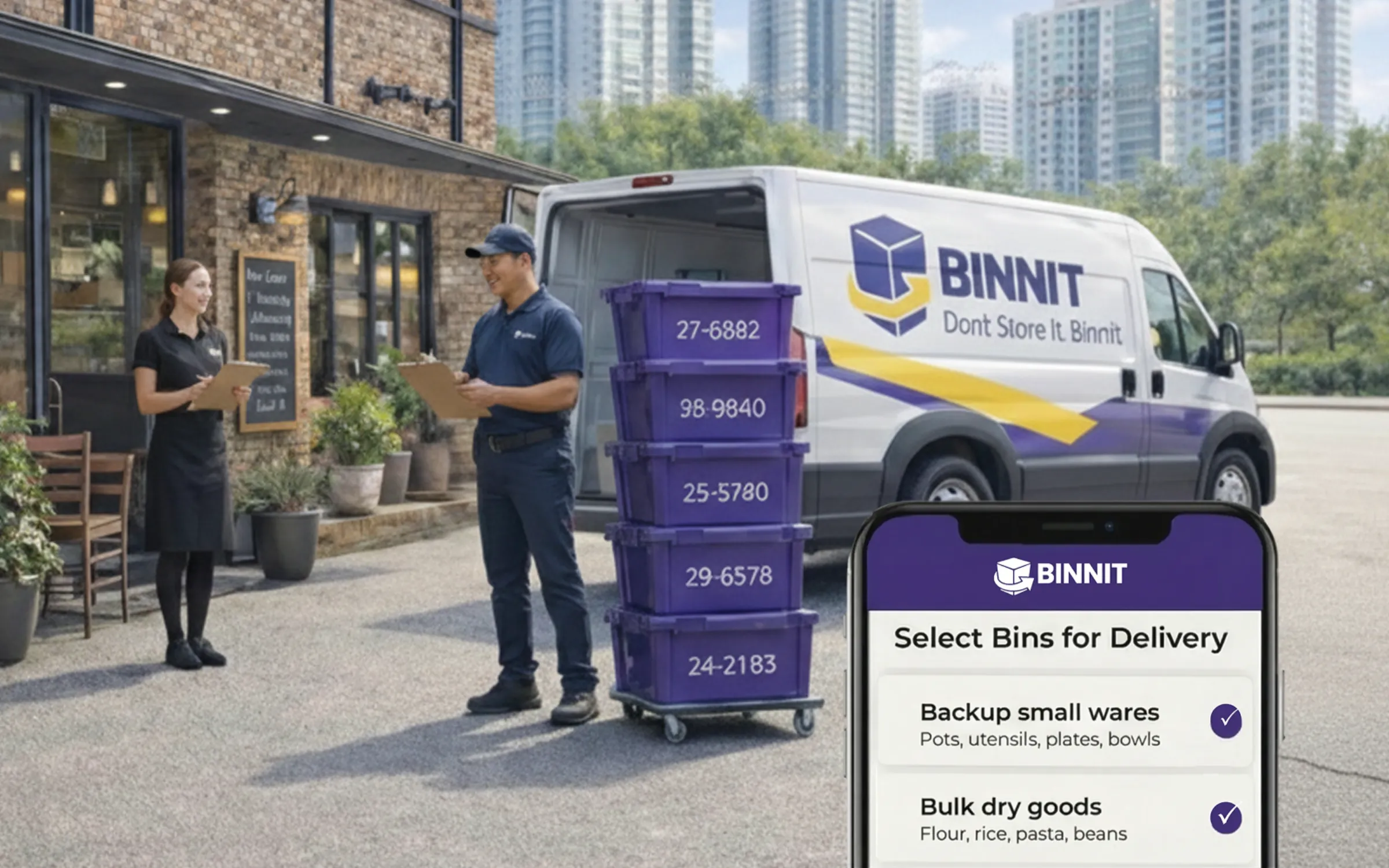 Patio season, holiday décor, and limited-time menus require storage that shifts throughout the year. Binnit handles pickup and delivery, so staff avoid locker runs.